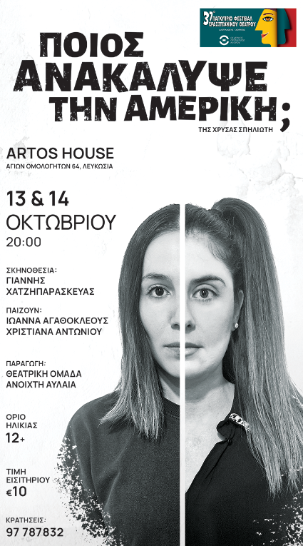ΠΟΙΟΣ ΑΝΑΚΑΛΥΨΕ ΤΗΝ ΑΜΕΡΙΚΗ; Η Θεατρική Ομάδα Ανοιχτή Αυλαία παρουσιάζει το έργο «Ποιός ανακάλυψε την Αμερική;» της αείμνηστης Χρύσας Σπηλιώτη.