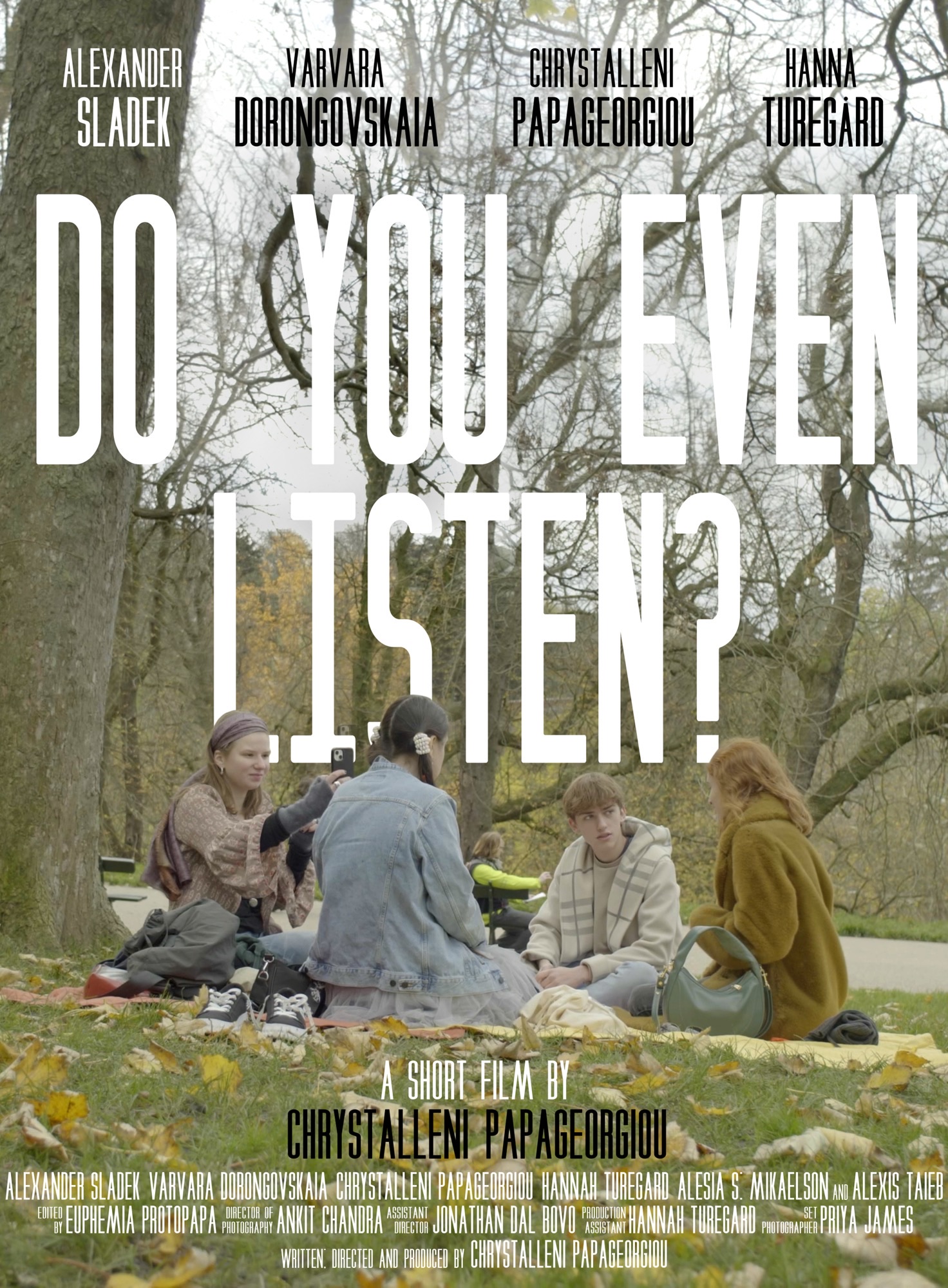Προβάλλεται για πρώτη φορά η ταινία μικρού μήκους «Do You Even Listen?» της Χρυσταλλένης Παπαγεωργίου, μια ευαίσθητη ματιά στις “κουφές” συναναστροφές της εποχής μας και την αξία της πραγματικής ακρόασης. Η είσοδος είναι ελεύθερη για το κοινό.