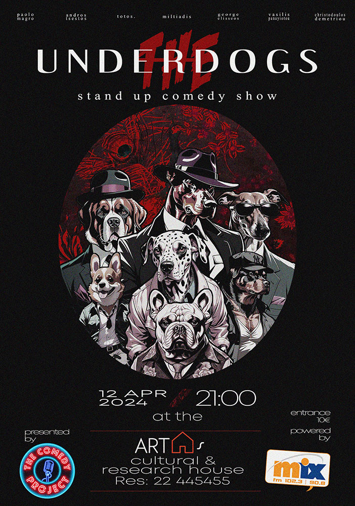 Το The Comedy Project επιστρέφει με τους “Underdogs” στο ARTos House στις 9 Μαΐου. Επτά νέοι κωμικοί, οπλισμένοι με καυστικό χιούμορ και ανατρεπτικές ιστορίες, υπόσχονται μια αξέχαστη βραδιά stand-up.