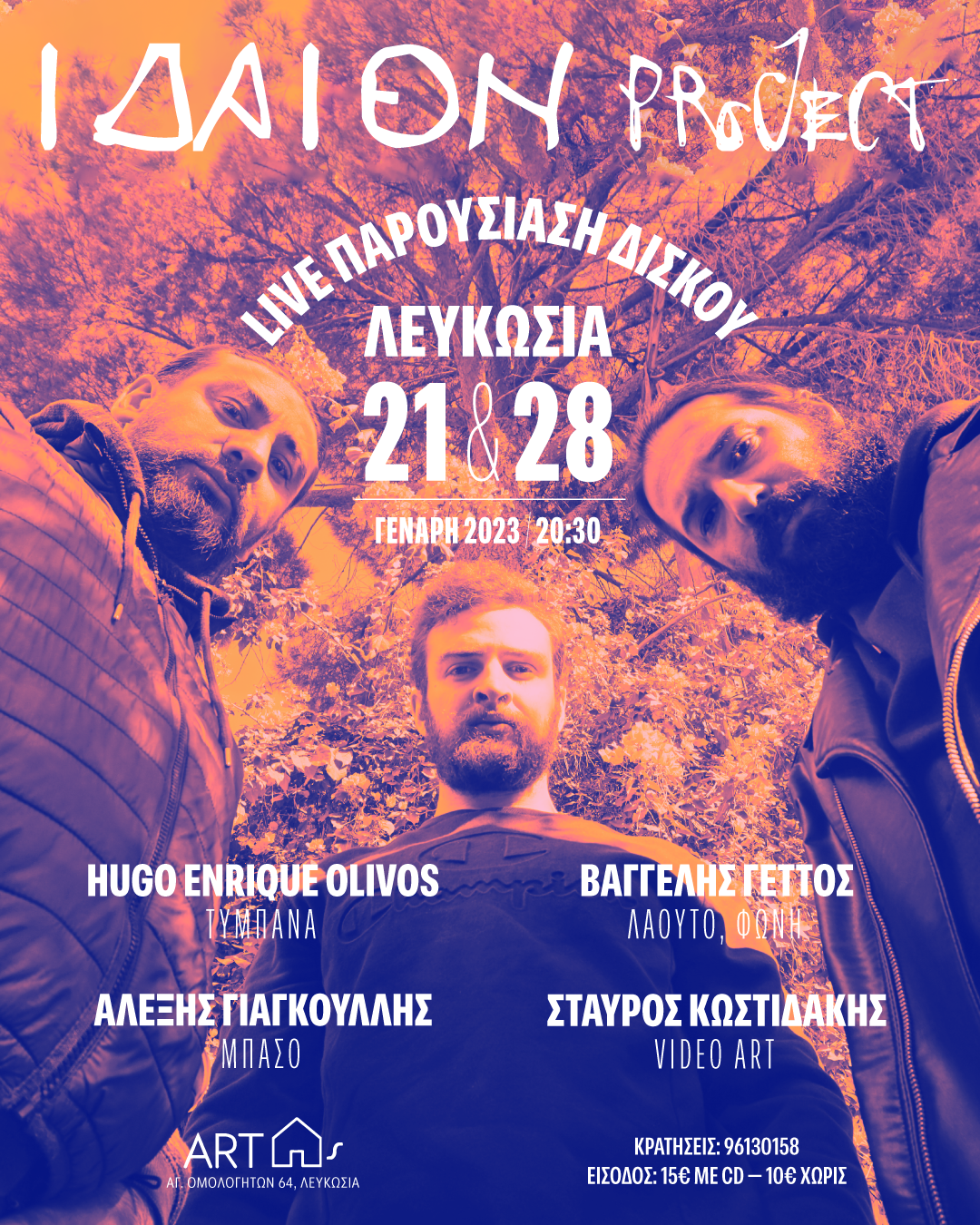 Οι Idaion Project παρουσιάζουν ζωντανά το πρώτο τους album στο ARTos, 21 & 28/1, 20:30. Ένα μίγμα κρητικής/μεσογειακής παράδοσης με stoner–rock, με οπτικό υλικό.