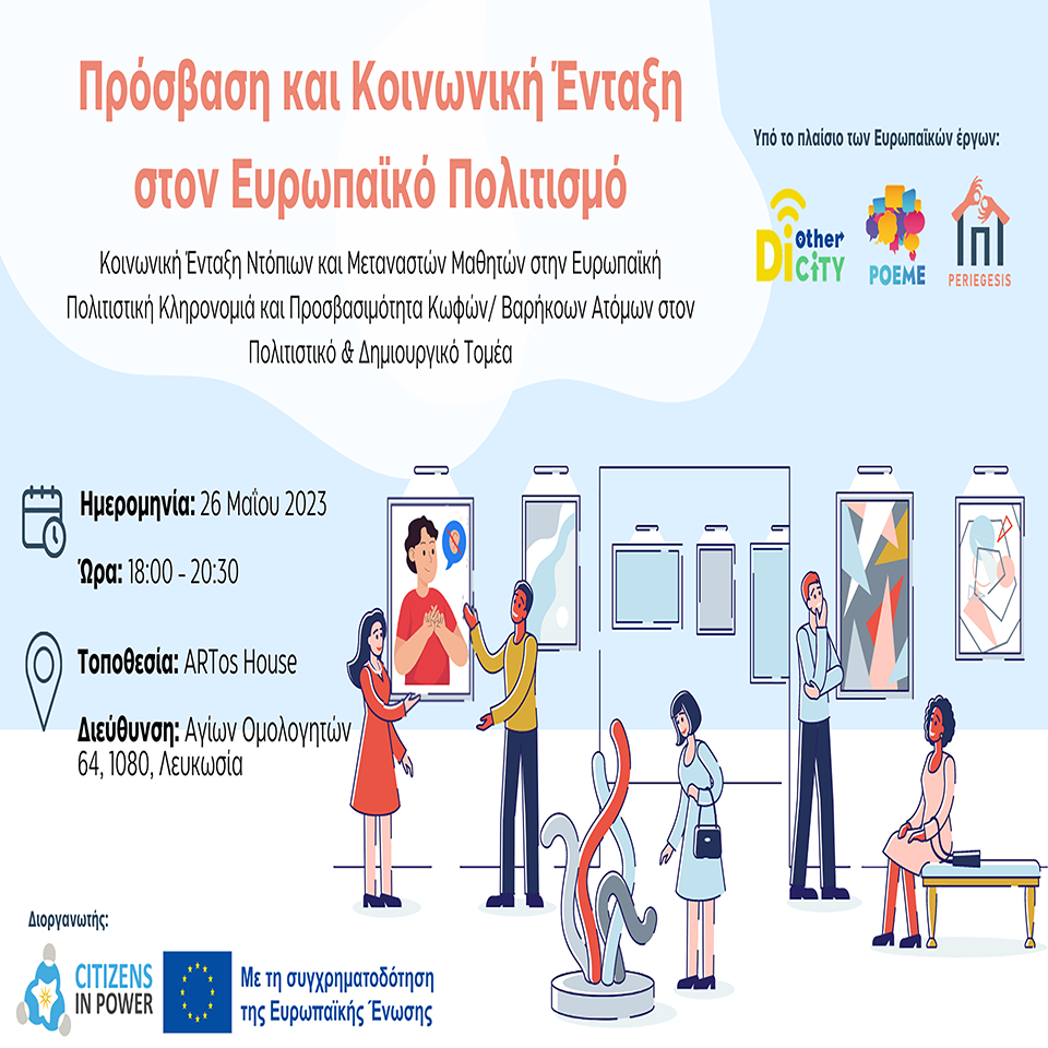 Το CIP διοργανώνει συνέδριο για την πρόσβαση και κοινωνική ένταξη στον ευρωπαϊκό πολιτισμό, με θεματικές για πολιτιστική κληρονομιά, ψηφιακά εργαλεία, επικοινωνία για κωφούς/βαρήκοους και διαδραστικά εργαστήρια για ένταξη και πρόσβαση στη δημιουργική βιομηχανία.